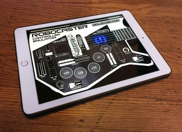 A new MIDI Designer layout emulates the controller portion of Moldover’s custom controller-guitar, The Robocaster. Get complete details from the MIDI Designer website, or jump right in and download the ZIP archive containing all the necessary files for MIDI Designer and Guitar Rig, along with some helpful text and photos.